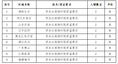 三、征集項(xiàng)目簡(jiǎn)介:根據(jù)《中南出版?zhèn)髅郊瘓F(tuán)股份有限公司采購(gòu)管理辦法(試行)》文件精神,從本年度開始,報(bào)社印刷業(yè)務(wù)采用框架協(xié)議采購(gòu)方式,包一:2家服務(wù)單位、包二:2家服務(wù)單位、包三:2家服務(wù)單位、包四:2家服務(wù)單位、包五:2家服務(wù)單位、包六:2家服務(wù)單位、包七:2家服務(wù)單位、包八:2家服務(wù)單位、包九:2家服務(wù)單位。本項(xiàng)目征集人為湖南快樂老人傳媒有限公司(以下簡(jiǎn)稱“征集人”)根據(jù)征集結(jié)果實(shí)施采購(gòu),承擔(dān)框架協(xié)議和采購(gòu)合同的簽訂與執(zhí)行。